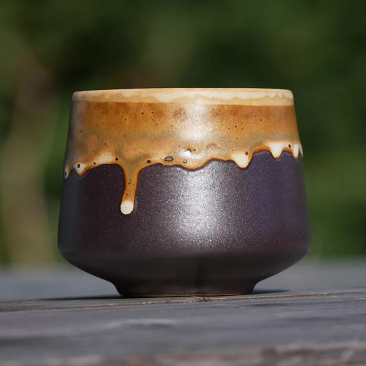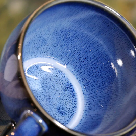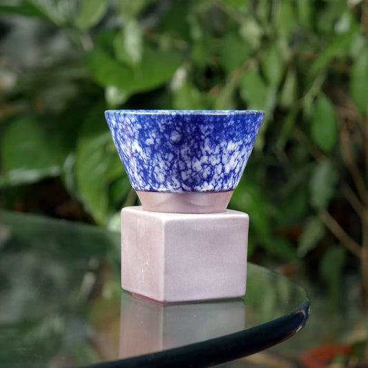 Stoneware Coffee / Tea Cup with Saucer "Conic cubic" Blue