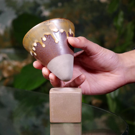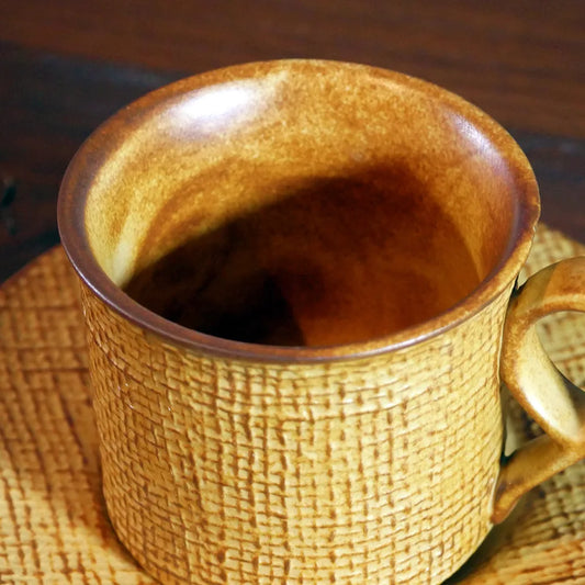 Stoneware Coffee / Tea Cup with Saucer "Conic cubic" Cream