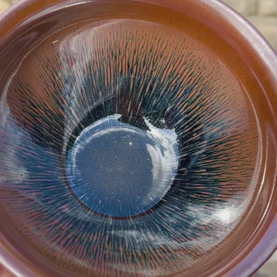 Grâce au travail des artisans et des archéologues, les bols de type “Poil de lièvre” ont pu renaître. Façonné à la main l'artisan Zheng Yuansheng, chaque bol est une dédicace à la tradition et à l'art oublié. Les motifs révélés par une glaçure réactive, varient d’une pièce à l’autre, offrant un jeu subtil de couleurs et de reflets à chaque utilisation. Une véritable œuvre d’art, où tradition et poésie se rencontrent.